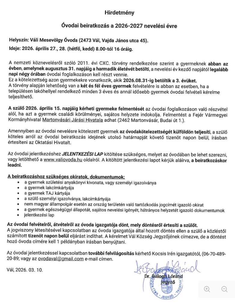 Nagy szeretettel köszöntöm Önöket Vál község honlapján. Bízom benne, hogy minden szükséges információt megtalálnak a folyamatosan bővülő portálon, akár helyi lakosként, akár érdeklődőként látogatnak el internetes oldalunkra.